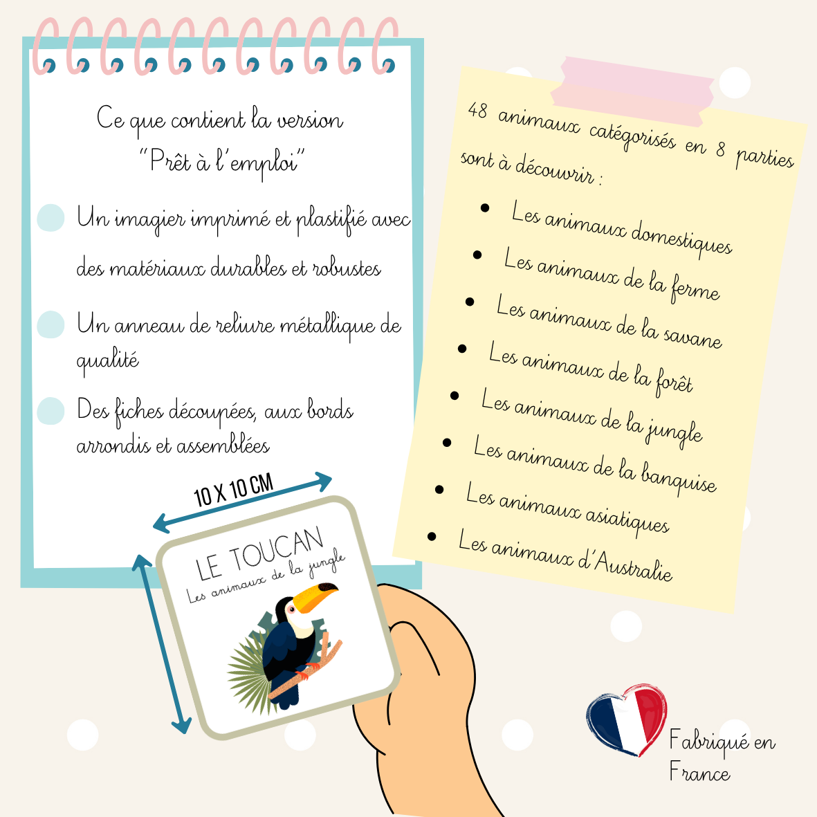 Cartes 10x10 cm, faciles à saisir