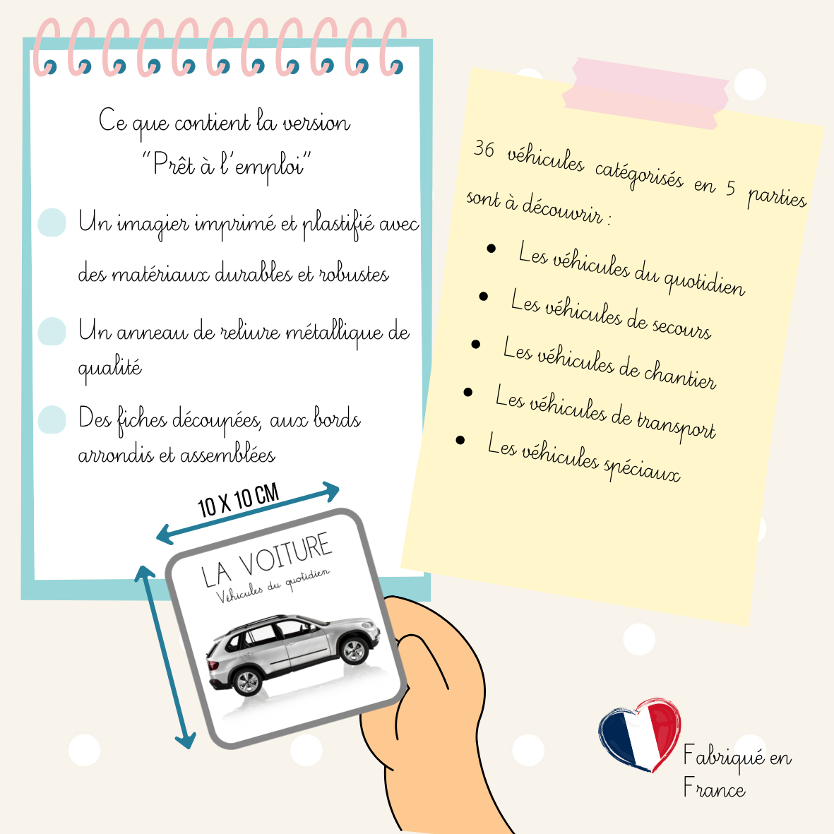 🛻 Un imagier plastifié à emporter partout pour découvrir les véhicules et enrichir son vocabulaire !
